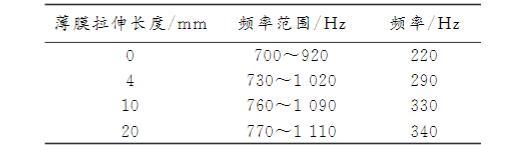 表3薄膜拉伸長度與吸聲系數(shù)>0.6對應的頻率范圍表