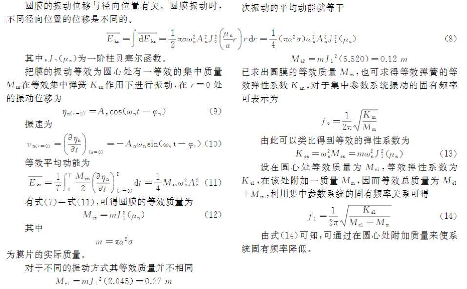 MAMs由一個或多個微小中心質(zhì)量塊粘結(jié)在薄膜上組成的二維周期性陣列結(jié)構(gòu)構(gòu)成。研究表明,衡量其隔聲降噪效果的傳遞損失(TL)與多種參數(shù)相關(guān),包括幾何尺寸、質(zhì)量塊分布、中心質(zhì)量塊質(zhì)量、薄膜厚度和薄膜預應力(表面張力)等微結(jié)構(gòu)參數(shù)?,F(xiàn)有研究對附加質(zhì)量塊非中心布置和多質(zhì)量塊布置的影響有所涉及,但仍缺乏實驗驗證。本文在現(xiàn)有成果基礎上,通過有限元仿真與實驗對比,研究由彈性薄膜和質(zhì)量塊構(gòu)成的MAMs的隔聲特性。