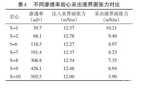 (1)實驗方法采用芬蘭Kibron dIFT雙通道動態(tài)界面張力儀檢測不同滲透率巖心的二次水驅采出液和原油的界面張力。