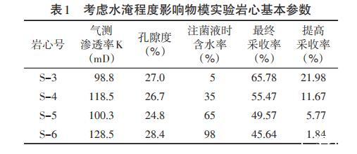 (1)實驗步驟分別將滲透率約為100mD的巖心S-3,S-4,S-5,S-6水驅至含水率5%,35%,65%,98%,然后注入微生物,評價不同含水期注入功能菌對最終微生物驅油提高采收率效果的影響,具體實驗步驟如下: