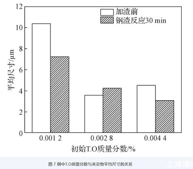 圖7鋼中T.O質(zhì)量分數(shù)與夾雜物平均尺寸的關(guān)系