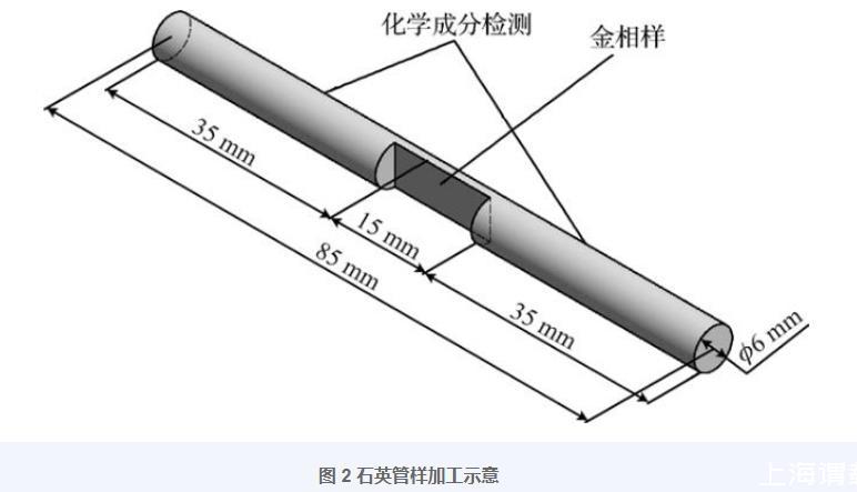 每個石英管樣長度約為85 mm,直徑約為6 mm,試樣加工如圖2所示。取中間位置制備金相樣;取兩頭中光潔度較好、致密度較高的一頭進行表面磨光,車取直徑為4 mm的氧氮氣體棒;最終余料取屑用于分析鋼中剩余主要元素的質(zhì)量分數(shù)。金相樣經(jīng)過線切割、精細磨拋后,用ASPEX掃描電鏡檢測試樣,并對掃描結(jié)果進行分析,統(tǒng)計每個試樣中氧化物夾雜的數(shù)量密度和平均尺寸。