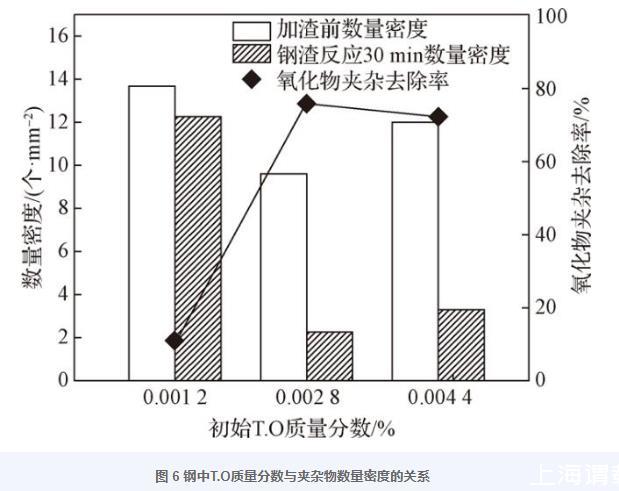 圖6鋼中T.O質(zhì)量分數(shù)與夾雜物數(shù)量密度的關(guān)系