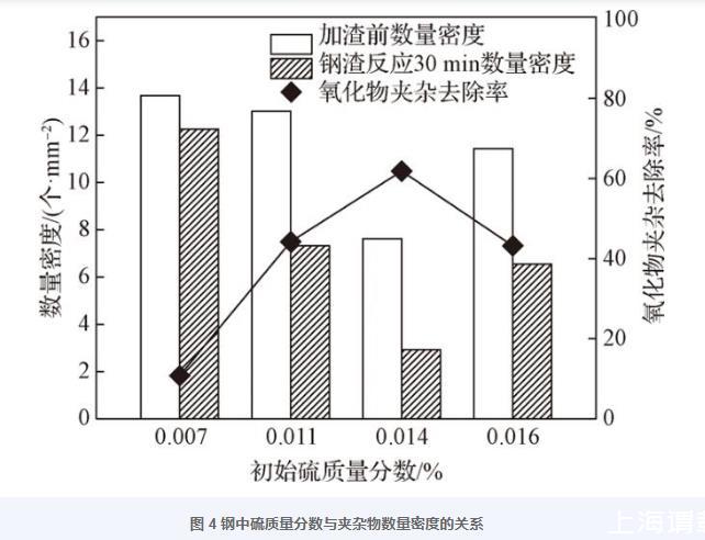 圖4鋼中硫質(zhì)量分數(shù)與夾雜物數(shù)量密度的關(guān)系