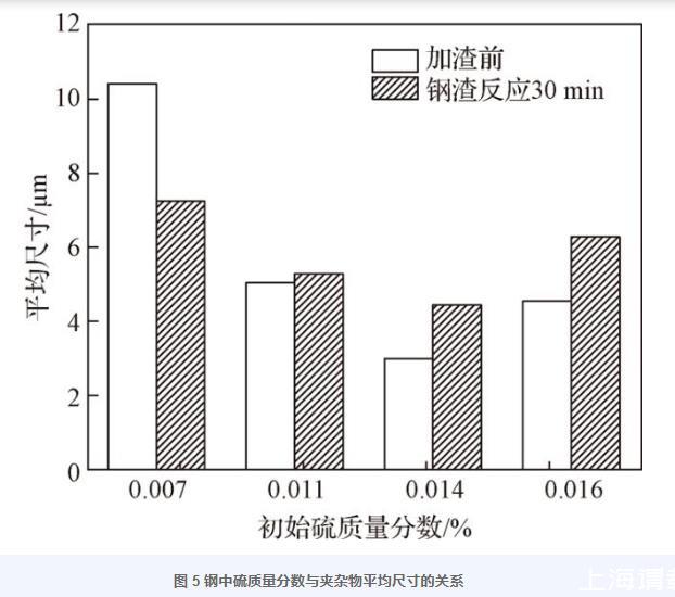 圖5鋼中硫質(zhì)量分數(shù)與夾雜物平均尺寸的關(guān)系