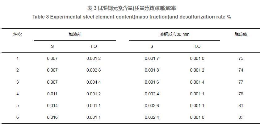 表3試驗鋼元素含量(質(zhì)量分數(shù))和脫硫率