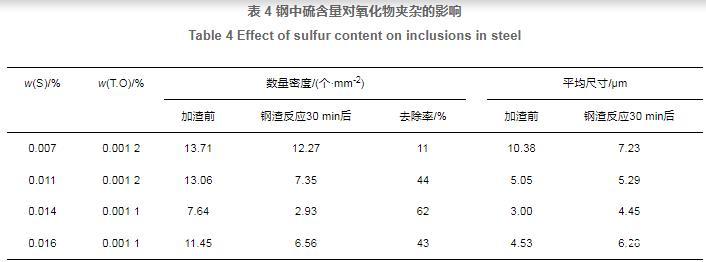 表6鋼渣反應(yīng)前后氧化物夾雜數(shù)量密度