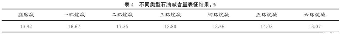 (2)萃出石油堿組分含量為4.46%,相對分子質量主要分布在300~700,碳數(shù)對應C21~C49,結構以環(huán)烷堿為主;