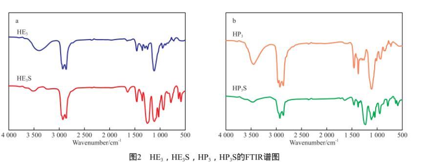 可見,產(chǎn)物的1H NMR譜圖分析結果與HE3S和HP3S的理論分子式結構相吻合,表明成功得到了目標產(chǎn)物。