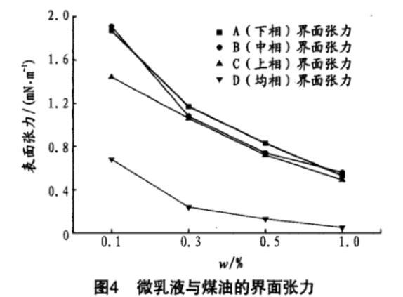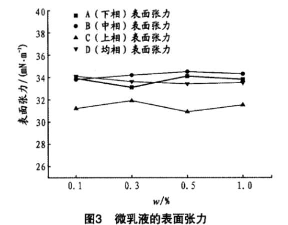 對(duì)上述微乳液進(jìn)行了表/界面張力的測試,結(jié)果見圖3。