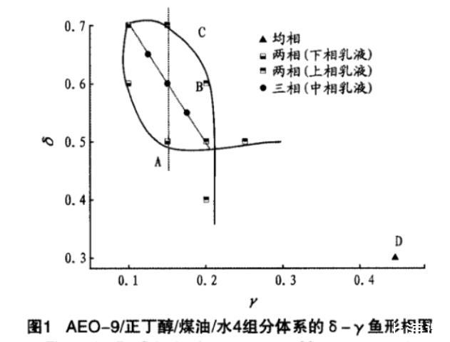 采用魚形相圖對(duì)微乳液相行為進(jìn)行描述,具有直觀明了、簡單實(shí)用等特點(diǎn)。