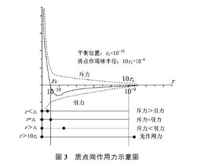 由熔體作用力理論可知,組成熔體的質(zhì)點間存在著作用力。當質(zhì)點處于平衡位置時,即質(zhì)點間距r=r0(r0=10?1?)時,引力等于斥力,質(zhì)點間作用力為0;質(zhì)點間距r>r0,作用力為引力;質(zhì)點間距r<r0,作用力為斥力;當質(zhì)點間距r>10r0時,引力和斥力均為0,如圖3所示。