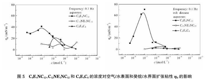2.2 C8E4NC12、C12NE3NC12和C8E4C8的表、界面擴(kuò)張粘性