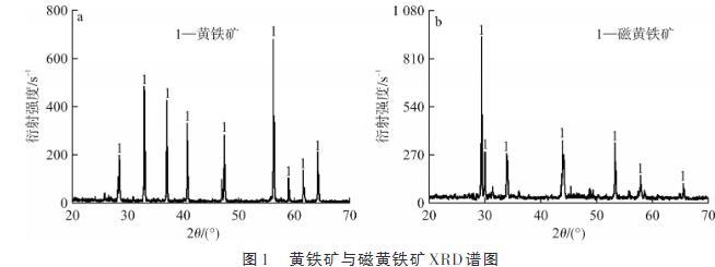 圖1黃鐵礦與磁黃鐵礦XRD譜圖