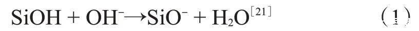 模擬地層水配制的納米SiO2/SDS體系的pH值在8.5左右,此時(shí),納米SiO2表面的羥基會和OH-發(fā)生如下反應(yīng):