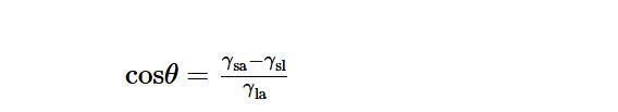 在由顆粒穩(wěn)定的泡沫中,氣泡表面存在不可逆吸附的顆粒層,可以起到抵抗聚結(jié)和粗化的物理屏障作用。顆粒必須首先吸附到表面上才能實現(xiàn)穩(wěn)定泡沫的功能。通常認(rèn)為,顆粒在空氣/液體表面的吸附與顆粒的潤濕性相關(guān),該潤濕性通過顆粒與空氣/液體界面的接觸角來量化,可由楊氏方程計算得到: