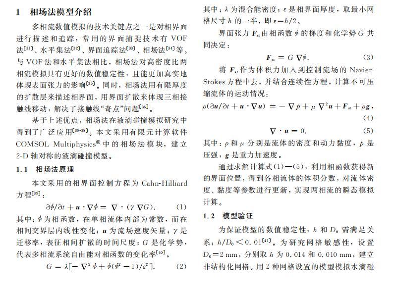基于上述優(yōu)點(diǎn),相場法在液滴碰撞模擬研究中得到了廣泛應(yīng)用。本文采用有限元計(jì)算軟件COMSOL Multiphysics
