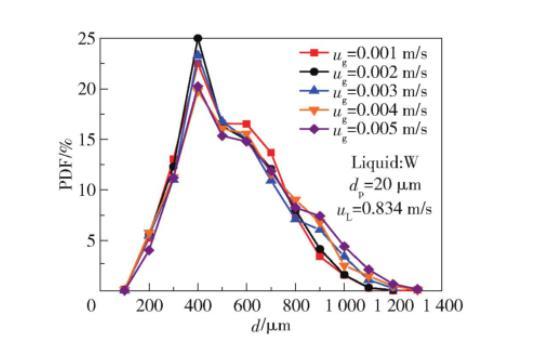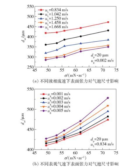 表面張力變化不僅影響平均尺寸,還深刻改變了氣泡尺寸分布形態(tài)(圖2)。隨著σ降低: