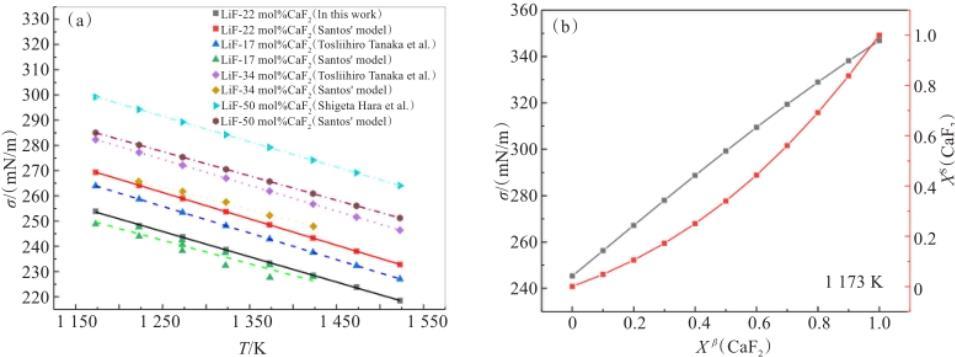 2.1.1 LiF-CaF2體系表面張力模型及數(shù)據(jù)評估