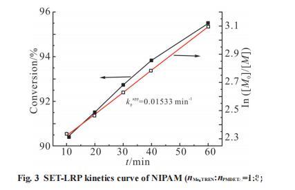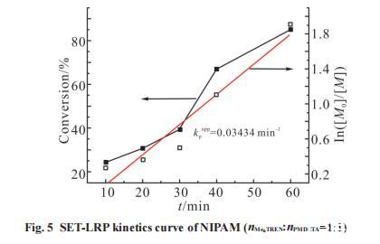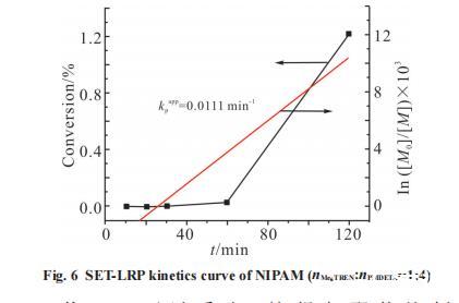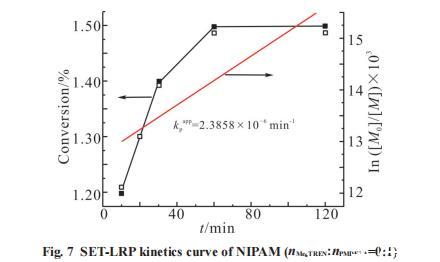 從Fig.7可以看出,這組與配體比例當(dāng)nMe TREN:nPMDETA 6 =1:4類似,轉(zhuǎn)化率極低,實(shí)驗(yàn)現(xiàn)象也相同,說(shuō)明在Me。TREN占比低于PMDETA時(shí),混合配體的催化效率會(huì)明顯下降甚至不能催化聚合。