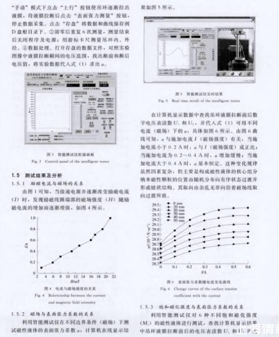 摘要:利用同種磁性液體表面張力智能測(cè)試儀在不同邊界條件下對(duì)磁性液體的表面張力系數(shù)進(jìn)行了測(cè)試,實(shí)驗(yàn)結(jié)果表明,磁性液體表面張力系數(shù)與磁場(chǎng)強(qiáng)度及其飽和磁化強(qiáng)度成正比。利用不同儀器、在相同邊界條件下對(duì)同種磁性液體表面張力系數(shù)測(cè)試的結(jié)果表明,智能儀器能夠準(zhǔn)確獲取磁性液體液膜斷前、斷后的電壓值,減小依靠人眼盲讀電壓值產(chǎn)生的誤差,測(cè)試精度比傳統(tǒng)儀器提高了4.14。