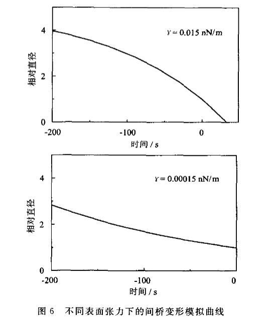 實(shí)驗(yàn)和模擬結(jié)果顯示,細(xì)胞表面張力的變化深刻影響著胞質(zhì)分裂進(jìn)程中細(xì)胞間橋的變形。我們之前的實(shí)驗(yàn)表明,經(jīng)過blebbistatin整體處理后的細(xì)胞,其間橋變形D?點(diǎn)之前與γ=0.015 nN/μm的模擬曲線較吻合,與正常細(xì)胞和單側(cè)子細(xì)胞CD處理后的正常細(xì)胞差異明顯,說明表面張力和分裂溝主動(dòng)收縮共同影響間橋變形。另一方面,整體blebbistatin和局部CD共同作用下的細(xì)胞顯示了與其它各組不同的變化趨勢(shì),其變形曲線近似為線性,這與彈性松弛變形的曲線相似,也與間橋變形動(dòng)力學(xué)模型中當(dāng)表面張力接近0的情況相近,結(jié)果顯示在去除分裂溝主動(dòng)收縮的條件下,細(xì)胞表面張力直接決定著細(xì)胞間橋變形。