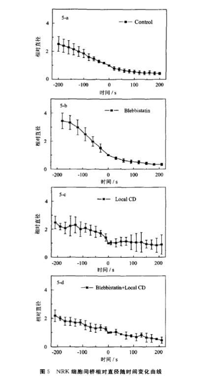圖5 NRK細(xì)胞間橋相對(duì)直徑隨時(shí)間變化曲線