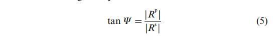 橢偏儀是一種研究表面和薄膜的技術,其基礎是利用偏振光束從界面或薄膜反射或透射時發(fā)生的偏振變換。33在橢偏儀中,測量兩個量J和D, 式中,J是角,其切線是全反射系數(shù)大小的比率,由下式給出: