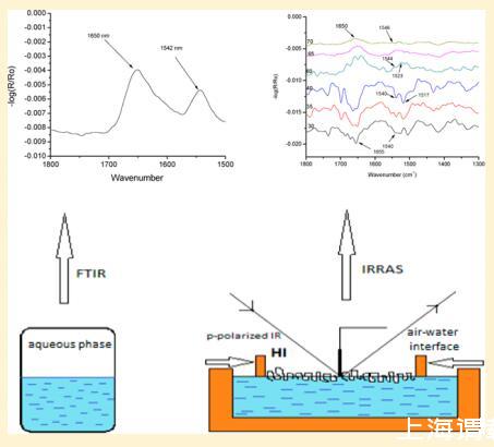 本研究為HI-Langmuir單層膜的光學(xué)性質(zhì)提供了新的數(shù)據(jù)。 紫外線 ? 空氣中的可見光 ? 水界面與表面壓力相關(guān) ? 面積等溫線曲線。 根據(jù)HI和FITC標(biāo)記的HI-Langmuir單層的布儒斯特角和表觀熒光顯微鏡,未觀察到二維結(jié)構(gòu)域的形成。 通過(guò)IRRAS測(cè)量,人們觀察到蛋白質(zhì)在2-D中保持α-螺旋構(gòu)象,知道IRRAS方法允許檢測(cè)酰胺I和酰胺II帶,這與蛋白質(zhì)樣品中的α-螺旋和β-折疊相關(guān)。19,20