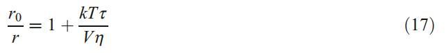 其中r0是在沒有旋轉(zhuǎn)自由度的情況下獲得的發(fā)射各向異性的極限值,k是波爾茲曼常數(shù),T是溫度,τ是熒光團(tuán)激發(fā)態(tài)的平均壽命,V是探針的有效分子體積,h是探針周圍的粘度。從等式17可以看出,r值越高,剛性越高,反之亦然。