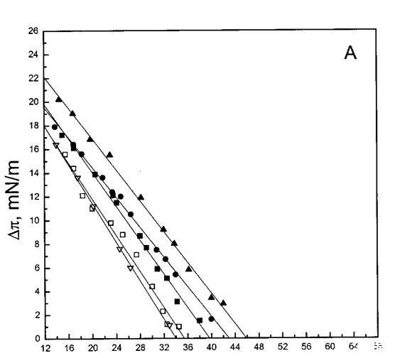 吲哚西丁的π也顯著增加,顯示其插入SOPC單層(圖1b)。然而,吲哚青素的膜活性明顯高于magainin 2,具有πc≈65mN/m,用于SOPC膠片。與magainin 2類似,單層中POPG含量的增加增強(qiáng)了吲哚青霉素的滲透,增加了?π低于~38 mN/m,與肽和脂質(zhì)單層之間的靜電相互作用一致。然而,在后一個(gè)表面壓力值之上,吲哚西丁引起的π增量被POPG減弱。因此,與magainin 2相反,在存在POPG的情況下,πc減小(圖1c),在XPG=0.4時(shí)從~65 mN/m(對于SOPC單層)變?yōu)閪50 mN/m。在SOPC單層中,吲哚西丁增加的π也被膽固醇(X=0.1)增加,而πc降低至~54 mN/m。圖1所示的magainin 2和吲哚西丁的模式非常不同,后一種肽的明顯交叉點(diǎn)為~38 mN/m。