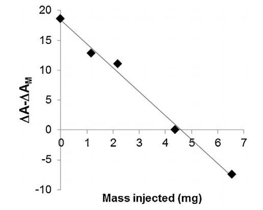 圖6。相對面積隨注射到亞相的脂質(zhì)體質(zhì)量的變化。線性回歸的R2為0.992。