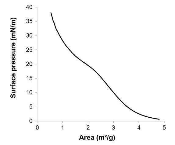 通過傳播精漿在空氣/緩沖液界面形成的單層的表面壓力面積(?–A)等溫線(n=3,標準偏差在0-18.9 mN/m范圍內(nèi)不超過1.5 mN/m,在18.9-38 mN/m范圍內(nèi)不超過1.2 mN/m)。