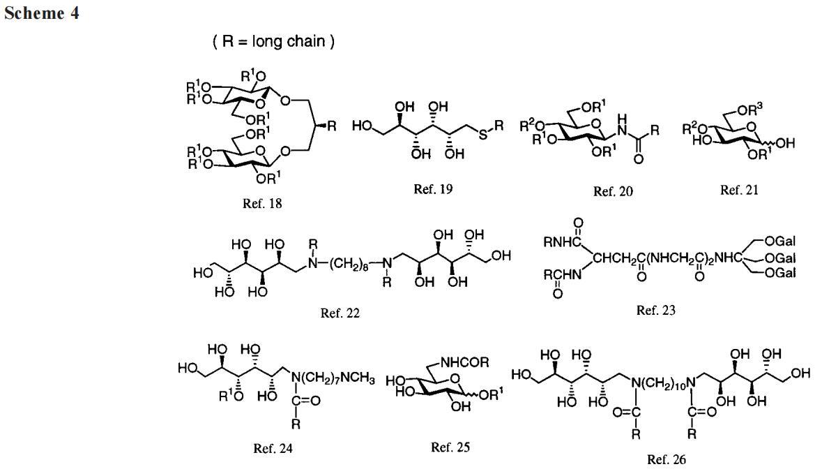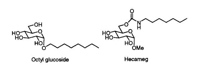 我們的第一個驚喜是發(fā)現A系列海藻糖雙子座不溶于水。例如,A-12、A-14和A-16(指鏈長的數字)在1毫升溫水中旋轉2毫克時會留下沉淀物。即使在70°C的溫度下,A-10也會在這種處理過程中形成渾濁的懸浮液。A-8在室溫下的可溶濃度僅為1-2 mM(根據動態(tài)光散射,在該濃度下,會形成膠束大小的聚集體)。天真地說,人們可能會認為a-8的溶解度大得多,因為該分子由六個羥基和兩個酰胺組成。盡管相關的6-氨基-6-脫氧己糖衍生物需要加熱才能溶解,25許多烷基化單糖(例如,辛基葡萄糖苷和甲基6-O-(N-庚基羰基)-R-D-吡喃葡萄糖苷或下面的“Hecameg”)是水溶性的。然而,A-8并沒有類似的天賦。這里的教訓是,用一句老生常談的話來說,我們的雙子座比其各個部分的總和要多(或少)。不管老生常談與否,雙子座的獨特屬性都取決于它。