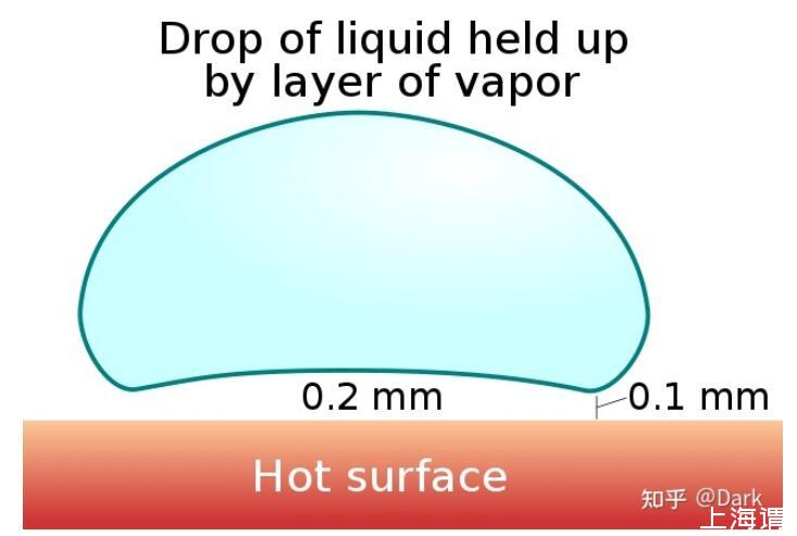 在萊頓弗羅斯特現(xiàn)象下,水珠中跟鐵板接觸的部分會(huì)迅速沸騰形成水蒸氣,與此同時(shí)水珠尚保持液體的狀態(tài),由于水蒸氣的傳熱比液體水慢得多,蒸氣層阻隔水直接接觸滾燙鐵板并大大降低水滴沸騰的速度。