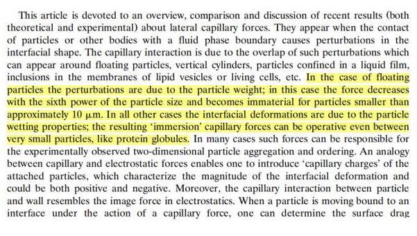 這里寫(xiě)的也比較清楚,漂浮顆粒之間的毛細(xì)作用由重力引起,其他的情況則是由顆粒的浸潤(rùn)性導(dǎo)致。如果有人還有疑問(wèn)的話,歡迎留言討論。