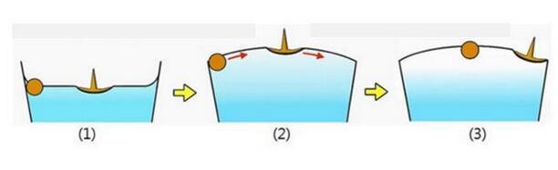 若兩個(gè)小固體漂浮在液面上。當(dāng)兩固體均被液體浸潤(rùn)或當(dāng)它們均不被浸潤(rùn)時(shí),表面張力的作用使相鄰兩固體相互接近;當(dāng)一個(gè)是被浸潤(rùn)而另一個(gè)不被浸潤(rùn)時(shí),表面張力使它們使他們遠(yuǎn)離。怎樣從張力角度來(lái)解釋?zhuān)?/span>