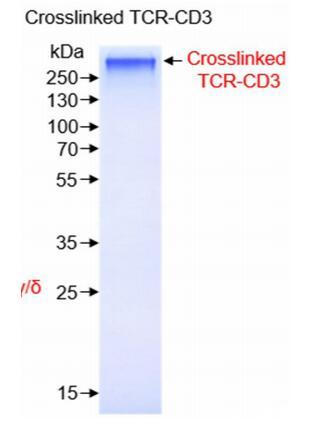 膜蛋白復(fù)合體TCR-CD3交聯(lián)后進行凝膠過濾分子篩層析,進行SDS-PAGE實驗,發(fā)現(xiàn)得到比較純的復(fù)合體。