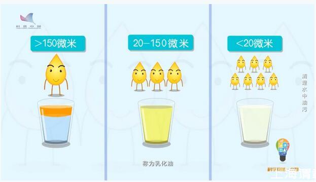 油是怎么存在水中的?油在水中的存在形式,根據(jù)油滴的粒徑,可以分為三類,油滴粒徑大于150微米稱為“浮油”,這也是油進入水體的主要存在形式;油滴粒徑在20-150微米之間稱為“分散油”;油滴粒徑小于20微米的稱為“乳化油”。不管是表面活性劑穩(wěn)定的油滴,還是無表面活性劑穩(wěn)定的油滴,極小的乳化油以油包水或水包油的形式懸浮于水中。