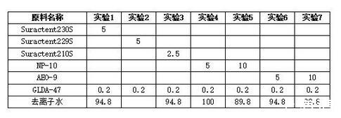實驗2結(jié)果:特種表活體系在清潔速度及清潔力上能明顯對比出與普通非離子表面活性劑處理效率的區(qū)別,具體數(shù)據(jù)如下表