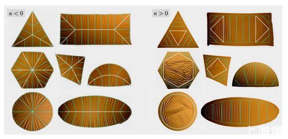 在這項研究中,團隊把重點放在具有正曲率和負曲率的彎曲外殼,重點分析材料的物理形狀和曲率對褶皺的模式可能產(chǎn)生多大的影響。