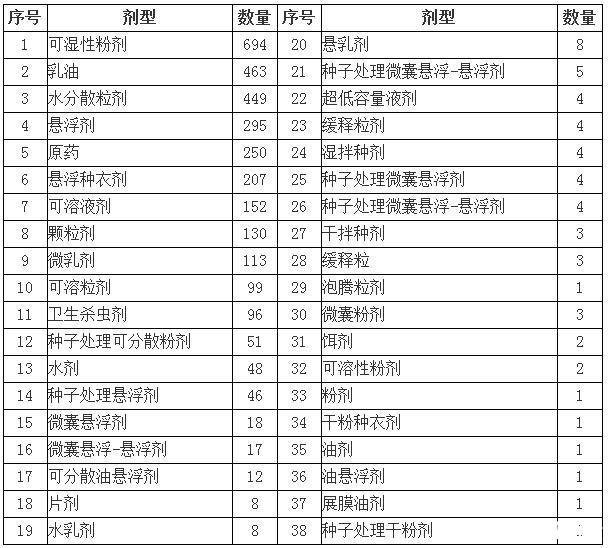 表2新煙堿類農(nóng)藥目前在我國(guó)登記的劑型及數(shù)目匯總