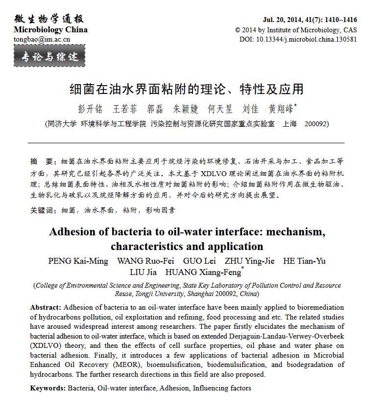 > 細(xì)菌在油水界面粘附的理論、特性及應(yīng)用