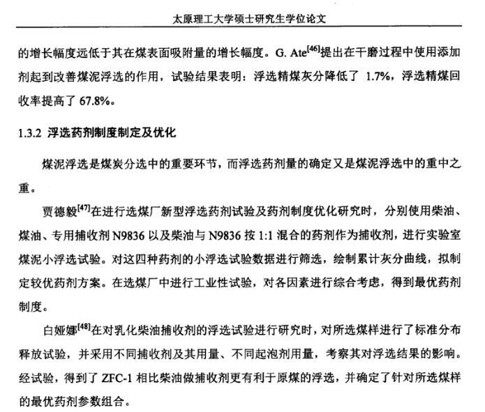 為研究浮選效果與礦漿表面張力之間的關(guān)系,對(duì)-0.5mm的平朔弱粘煤、馬蘭焦煤和晉城無(wú)煙煤進(jìn)行了浮選試驗(yàn),研究表明:煤油或仲辛醇用量適當(dāng)時(shí),隨著藥劑用量的增加,礦漿表面張力降低,可燃體回收率和精煤灰分升高,三者在同一藥劑量時(shí)達(dá)到極值點(diǎn),并在相同的藥劑量范圍內(nèi)維持在極值點(diǎn)附近;煤油或仲辛醇用量過(guò)大時(shí),隨著藥劑用量的增加,礦漿表面張力回升,可燃體回收率和精煤灰分回落。這一結(jié)果對(duì)利用礦漿表面張力來(lái)指導(dǎo)浮選藥劑制度、協(xié)助在線控制浮選可燃體回收率和精煤灰分有著重要意義。