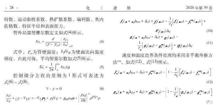 【摘要】:采用格子-玻爾茲曼方法 (LBM)構(gòu)建了考慮表面張力影響下封閉腔體內(nèi)加熱圓柱外自然對(duì)流數(shù)學(xué)模型。在分別對(duì)自然對(duì)流與表面張力模型模擬驗(yàn)證的基礎(chǔ)上,探究了液固表面張力與重力場(chǎng)下浮升力同時(shí)作用下加熱圓柱外流體自然對(duì)流的傳熱特性。結(jié)果表明,在給定Ra數(shù)下(103≤Ra≤106),隨著表面張力的增大(Oh數(shù)減小),封閉腔體內(nèi)管外自然對(duì)流擾動(dòng)會(huì)加劇,流型會(huì)變復(fù)雜,壁面換熱效率有明顯提高。