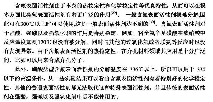 【摘要】:本論文首先對新型含氟表面活性劑的特性,應(yīng)用領(lǐng)域,國內(nèi)外研究進(jìn)展進(jìn)行了全面的綜述。含氟表面活性劑是目前最受青睞的特種表面活性劑,相比于傳統(tǒng)的碳?xì)浔砻婊钚詣砻婊钚詣┑挠昧可?,降低水溶液表面張力的作用?qiáng),同時(shí)可以跟其它表面活性劑起到很好的復(fù)配效果,可以應(yīng)用于消防、鉻霧抑制劑、造紙、冶金、起泡與消泡劑的合成等很多領(lǐng)域。