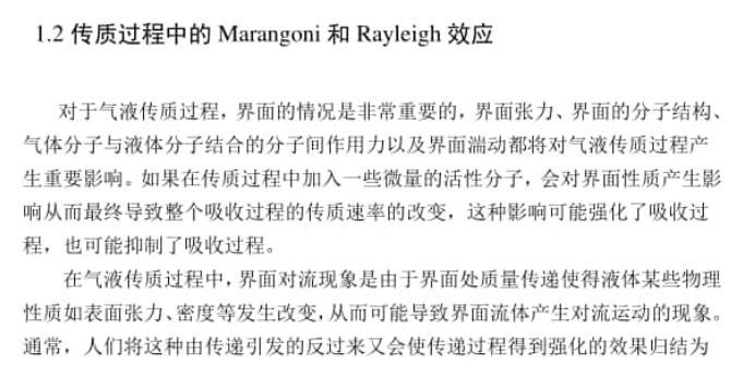 【摘要】:氣液傳質(zhì)在化工過程中普遍存在,研究氣液傳質(zhì)強(qiáng)化具有非常重要的意義。在氣液傳質(zhì)過程中,液體表面張力是控制界面?zhèn)髻|(zhì)的重要參數(shù),表面張力的變化會導(dǎo)致界面不穩(wěn)定,在一些條件下會引發(fā)近界面液體的對流現(xiàn)象,即Marangoni對流。界面對流的產(chǎn)生將對氣液傳質(zhì)過程造成顯著影響。本文通過添加低表面張力物質(zhì),研究了低表面張力物質(zhì)對氣液傳質(zhì)過程的影響,以期尋求強(qiáng)化氣液傳質(zhì)的有效手段。