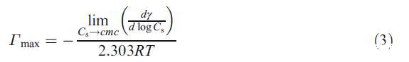 NP 溶液在不同 hp-β-CD 濃度下的界面張力(γ)如圖 1 所示。在任何 hp-β-CD 濃度下,界面張力隨著 NP 的增加而降低。 Hp-β-CD 由七個(gè)葡萄糖單元組成,形成一個(gè)具有親水外表面和疏水內(nèi)腔的環(huán),眾所周知,它主要以 1:1 的化學(xué)計(jì)量將客體分子結(jié)合到疏水腔中 [11]。 在 hp-β-CD 的水溶液中,NP 被認(rèn)為結(jié)合了 hp-β-CD 的疏水腔。 眾所周知,Hp-β-CD 由于其親水性外表面而不吸附在空氣-溶液界面。 這表明未摻入 hp-β-CD 腔的 NP 分子吸附在空氣 - 溶液界面。 在任何 hp-β-CD 濃度下均未觀察到表明膠束化開始的斷點(diǎn)(即臨界膠束濃度 (cmc))。 由于 NP 非常疏水,體相中的 NP 單體濃度不能增加到 cmc。 根據(jù) γ 與 log CS,非離子 NP 的最大表面過量 (Γmax) 通過 Gibb 吸附方程估計(jì)如下 [12]: