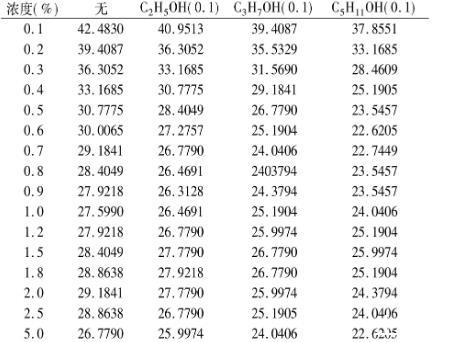 表5不同醇對(duì)黃花敗醬皂甙水溶液的表面張力的影響σ×10-3(N·m-1)