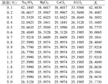 表4不同價(jià)態(tài)離子添加劑對(duì)黃花敗醬皂甙水溶液的表面張力的影響σ×10-3(N·m-1)